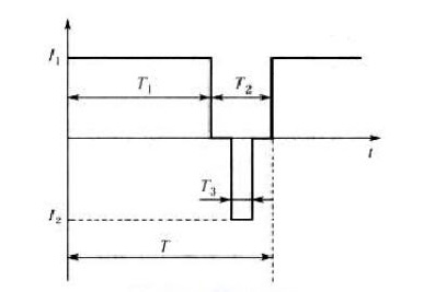 新型的直流充電樁采用快速充電法,該系統(tǒng)區(qū)別于傳統(tǒng)充電器所采用的連續(xù)電流充電和脈沖電流充電方式,采用了智能化的變脈沖充電方式,即采用下圖所示的充電電流脈沖,包括充電脈沖T1間歇脈沖T2以及放電脈沖T3。通過間歇停充,使蓄電池經(jīng)化學(xué)反應(yīng)產(chǎn)生的氧氣和氫氣有時(shí)間重新化合而被吸收掉,使下一輪的恒流充電能夠更加順利地進(jìn)行,使蓄電池可以吸收更多的電量。