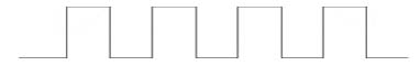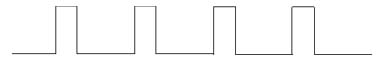而當(dāng)輸出電壓降至50V5A時(shí),控制脈沖的寬度降到最寬脈沖的10%, 形如: